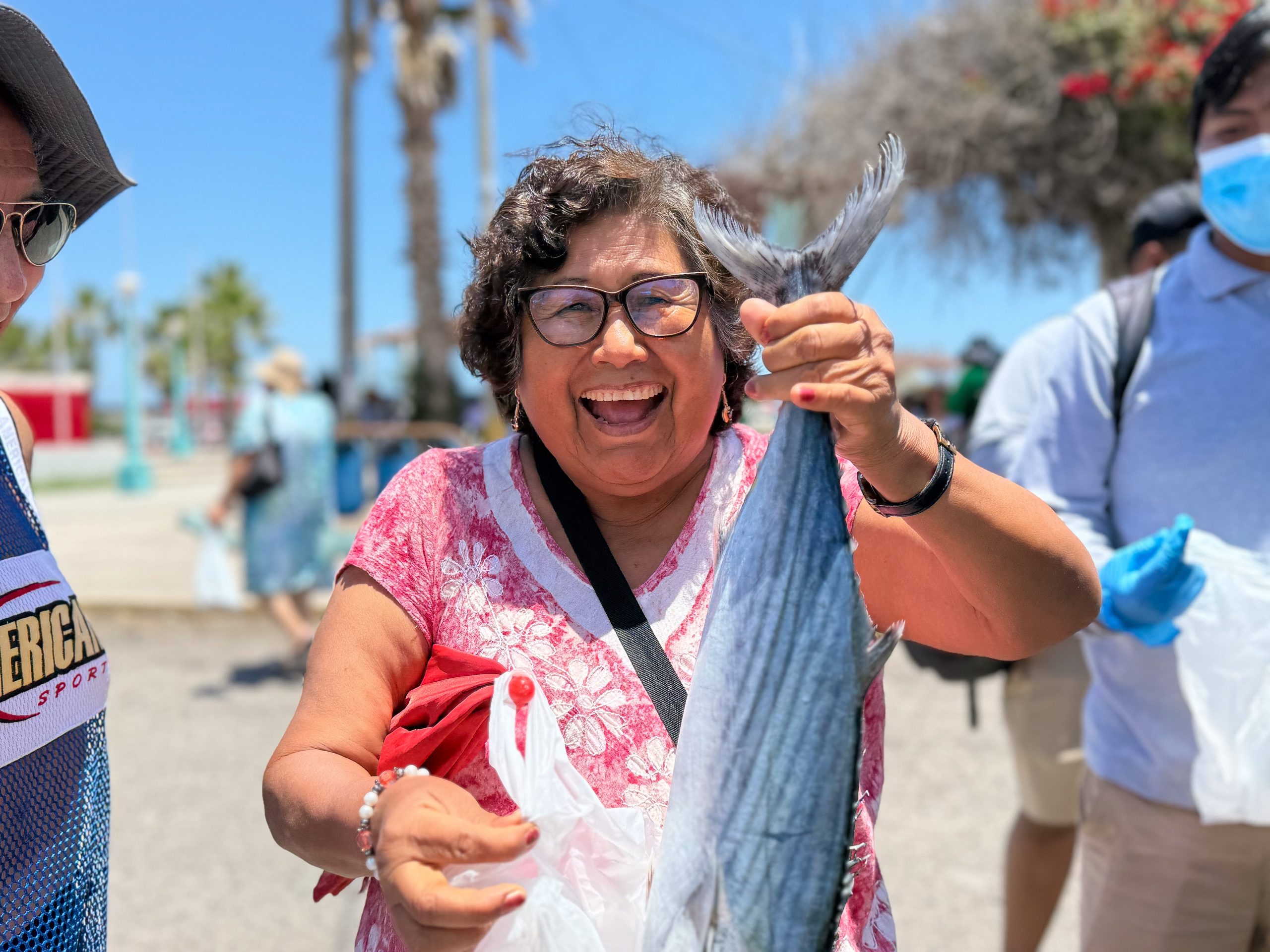 En un esfuerzo conjunto para fomentar el consumo de productos marinos, se entregó 500 kilos de pescado bonito a la población del centro poblado Boca del Río.