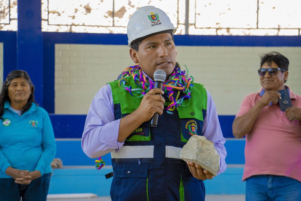 Con gran entusiasmo y la presencia activa de la población, el alcalde del distrito de Ilabaya, Ing. Juan Ordoñez, participó en la Colocación de la Primera Piedra, de remodelación de la losa deportiva del Anexo de Chulibaya.