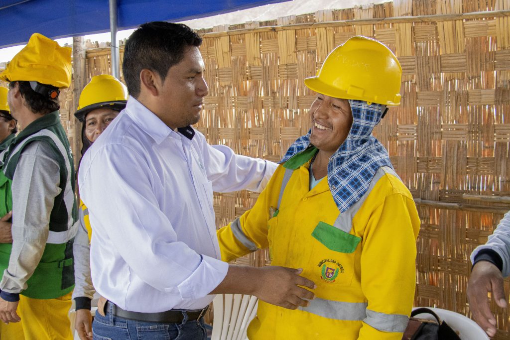 Esta mañana más de 50 colaboradores que trabajan en la obra del muro de contención de Mesa Grande, Mirave, recibieron la visita del alcalde distrital, Ing. Juan Ordoñez Miranda, junto a su equipo técnico de funcionarios quienes llevaron un mensaje motivacional por el reinicio de sus actividades diarias en beneficio de la población miraveña.