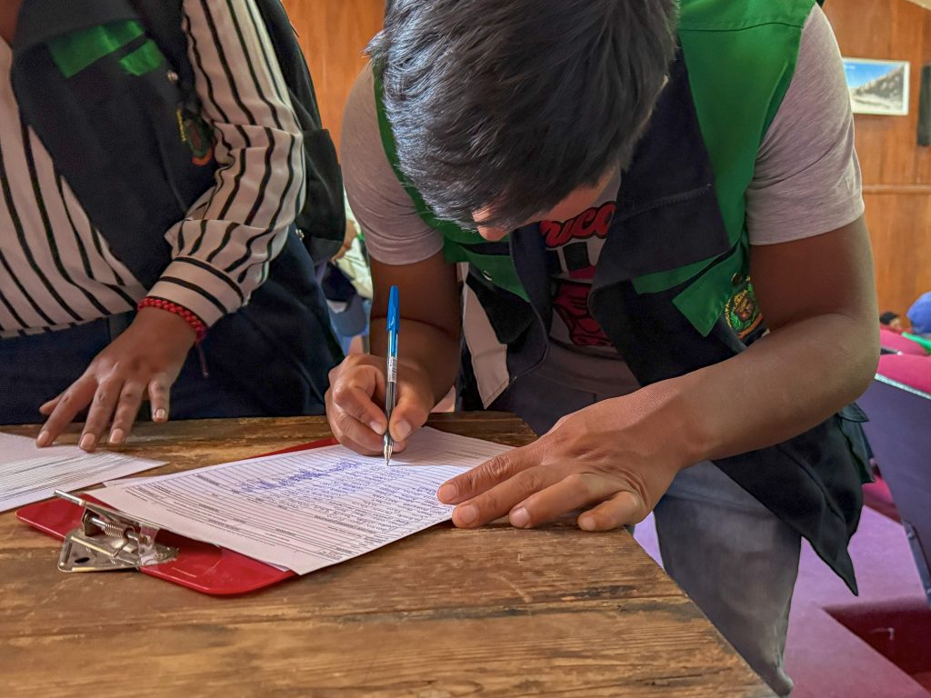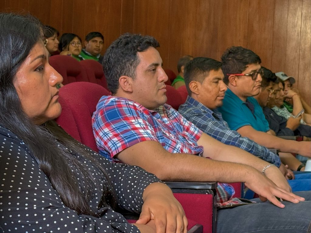 La charla estuvo a cargo del Ing. Carlos Cohaila Ramírez, responsable de Seguridad, Salud y Trabajo y la CPC. Magnolia Georgina Espinoza Gómez, representante de la Unidad de Recursos Humanos quienes abordaron temas de introducción al estado, introducción a la entidad y su cultura, ética e integridad y seguridad y salud en el trabajo.