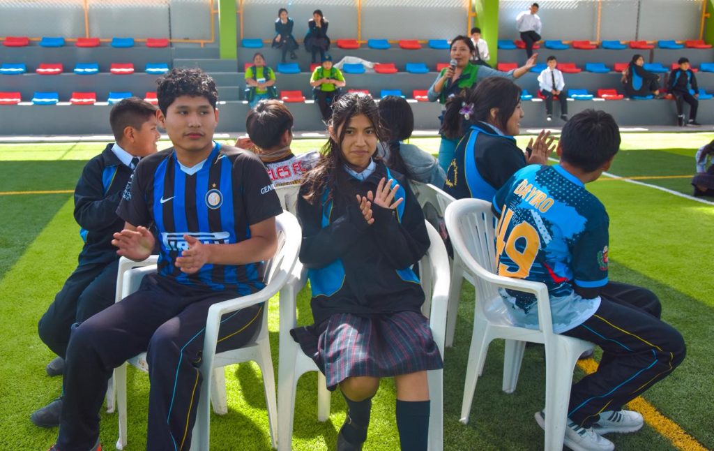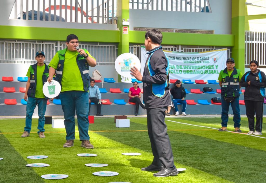 La jornada tuvo lugar en la losa deportiva Luis Cornejo Villanueva, donde los estudiantes disfrutaron de tres juegos didácticos: Memoria Ambiental, que puso a prueba sus habilidades para recordar y asociar imágenes; la Carrera Ambiental, que reforzó la importancia de segregar correctamente los residuos; y el divertido Bailetón con sillas, que arrancó carcajadas y aplausos entre todos los presentes.