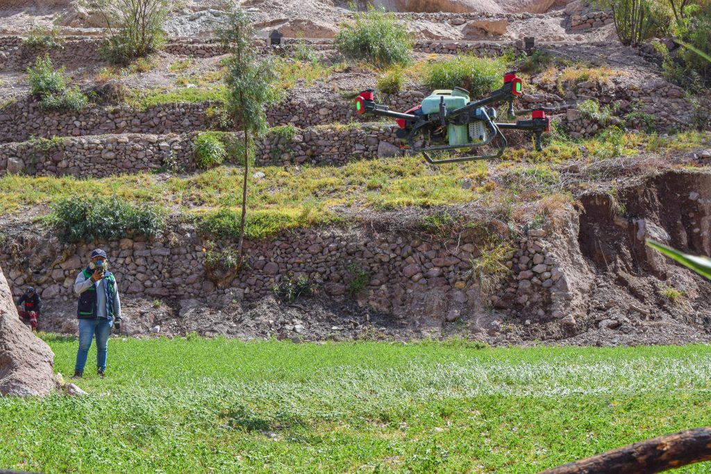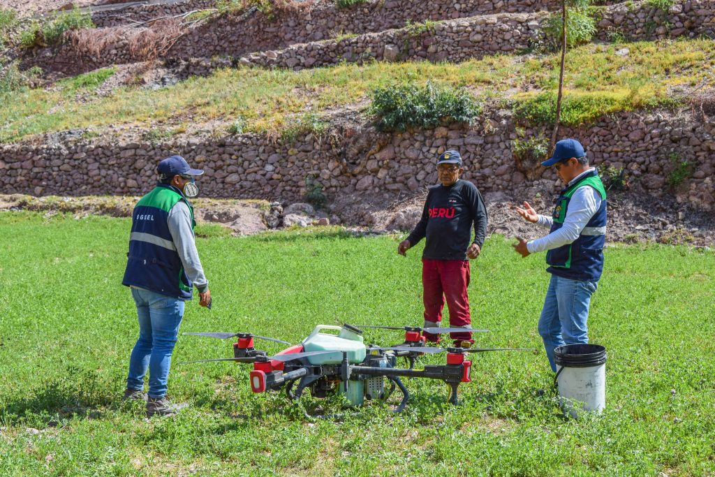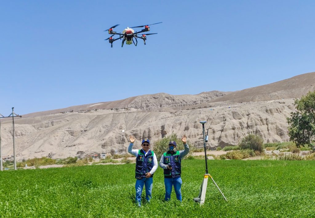Con ayuda del dron agrícola, la Municipalidad Distrital de Ilabaya, a través del proyecto ganadero, realizó la fumigación de hectáreas de alfalfa del anexo de Poquera, a fin de optimizar el control de plagas y prever apariciones de enfermedades a los cultivos.