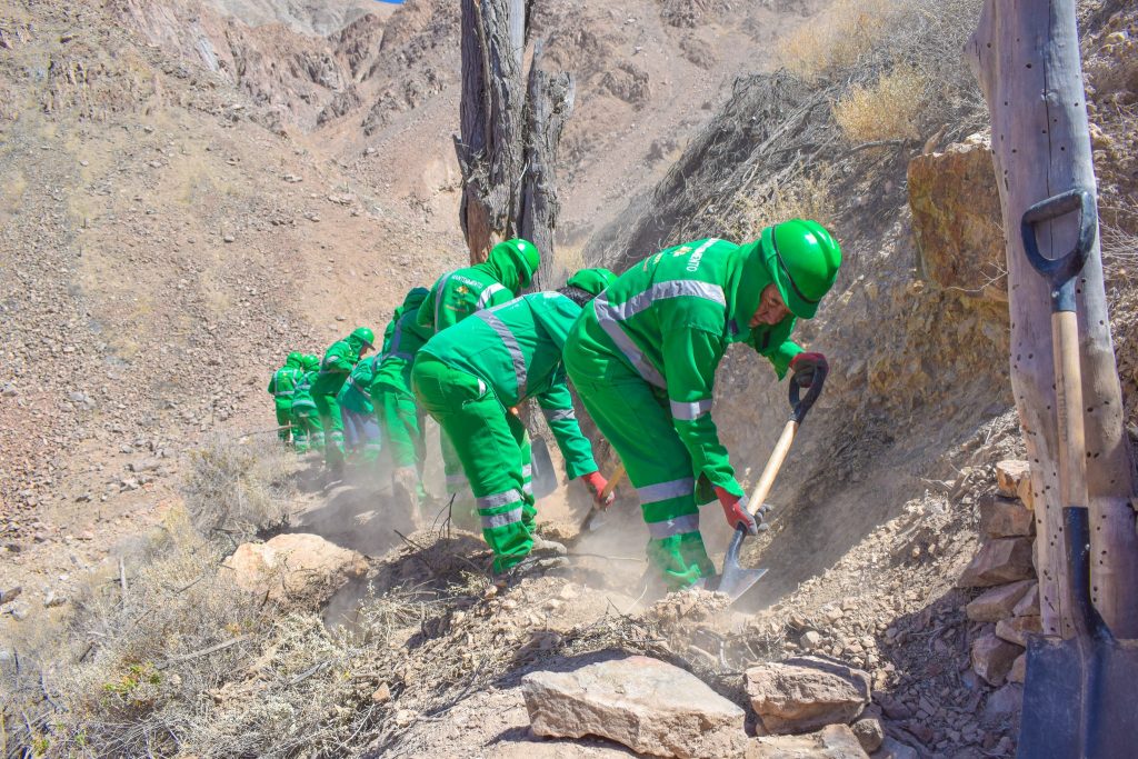 Provistos de Equipos de Protección Personal (EPP) hombres y mujeres, de diferentes edades, realizan la limpieza, descolmatación y muro seco del canal y acequias, a fin de dejarlo óptimo para la conducción del agua.