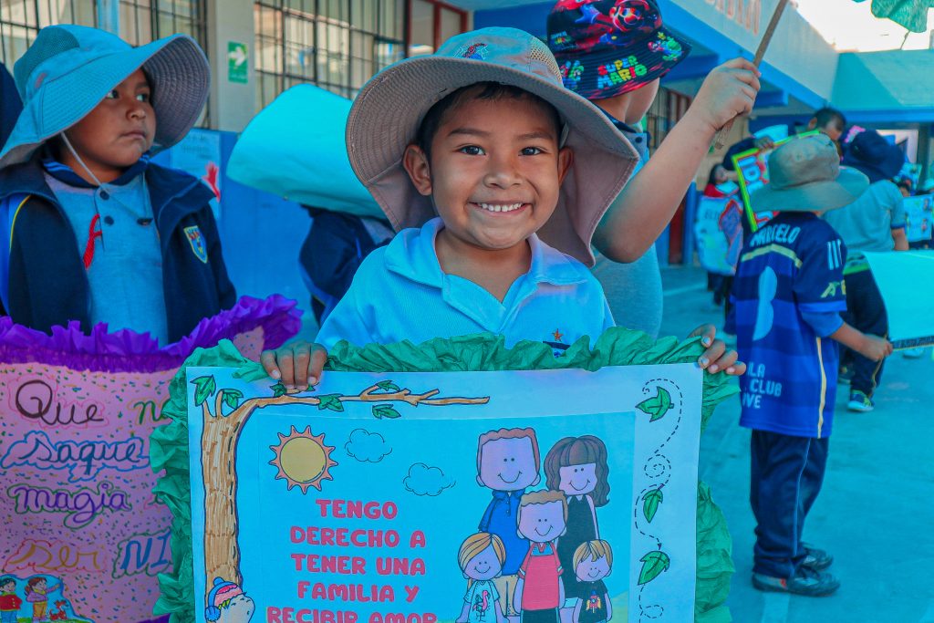 La movilización inició desde las instalaciones de la I.E. Gustavo Antonio Pinto Zeballos, donde los niños, desfilaron con carteles llenos de color y mensajes que nos recuerdan lo importante que es proteger y respetar sus derechos, recorrieron las calles del distrito llevando un mensaje claro y poderoso a la comunidad.