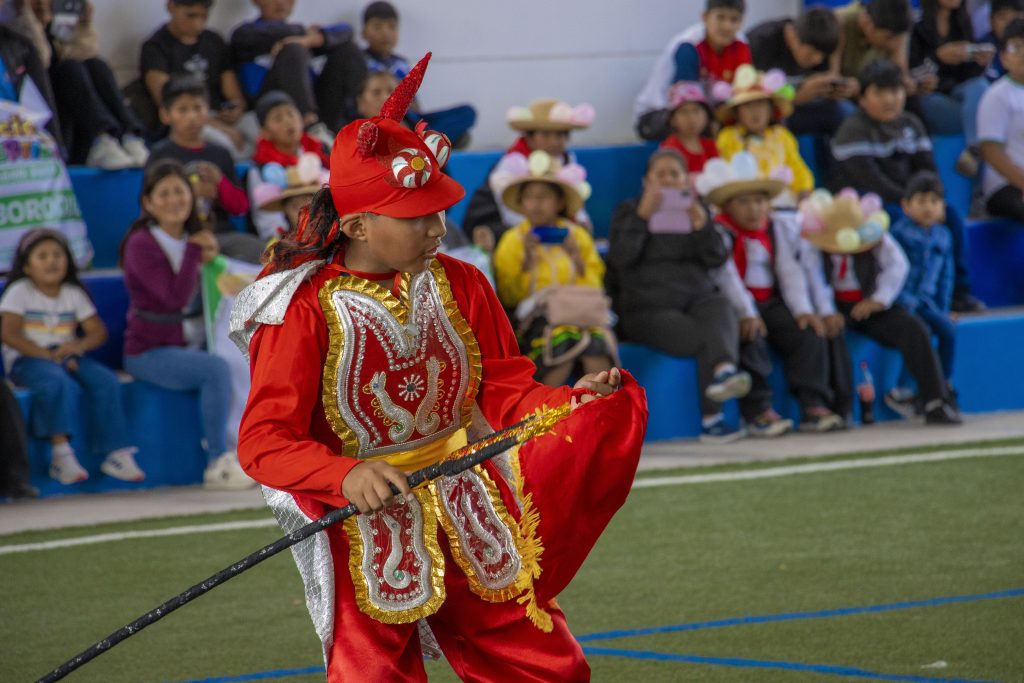 Durante el desarrollo de la ceremonia se presentaron danzas típicas, como La Diablada y El Carnaval Arequipeño, donde los niños y jóvenes, vestidos con coloridos trajes, demostraron lo aprendido en los talleres artísticos, causando el aplauso del público.