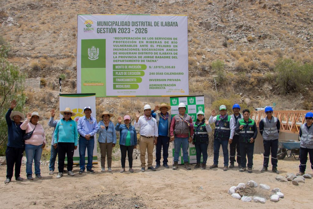 No más días de incertidumbre ante eventuales huaicos. Esta mañana se realizó la colocación de primera piedra para el proyecto de «Recuperación de los servicios de protección de riberas de río vulnerables ante el peligro e inundaciones / socavación del anexo de Higuerani del distrito Ilabaya».