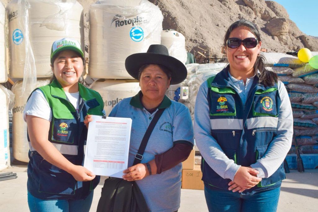 Las asociaciones Productores Agropecuarios del Distrito de Ilabaya, Innovadores Aromas de mi Tierra – Borogueña y Productores los Innovadores de Borogueña, recibieron bienes valorizados en S/. 117,886.00 entre ellos: balanzas, tanque de polietileno (Rotoplast), cilindro de plástico de 200 litros, lampa metálica saca maleza para deshierbo, segadera y sacos de fertilizantes.