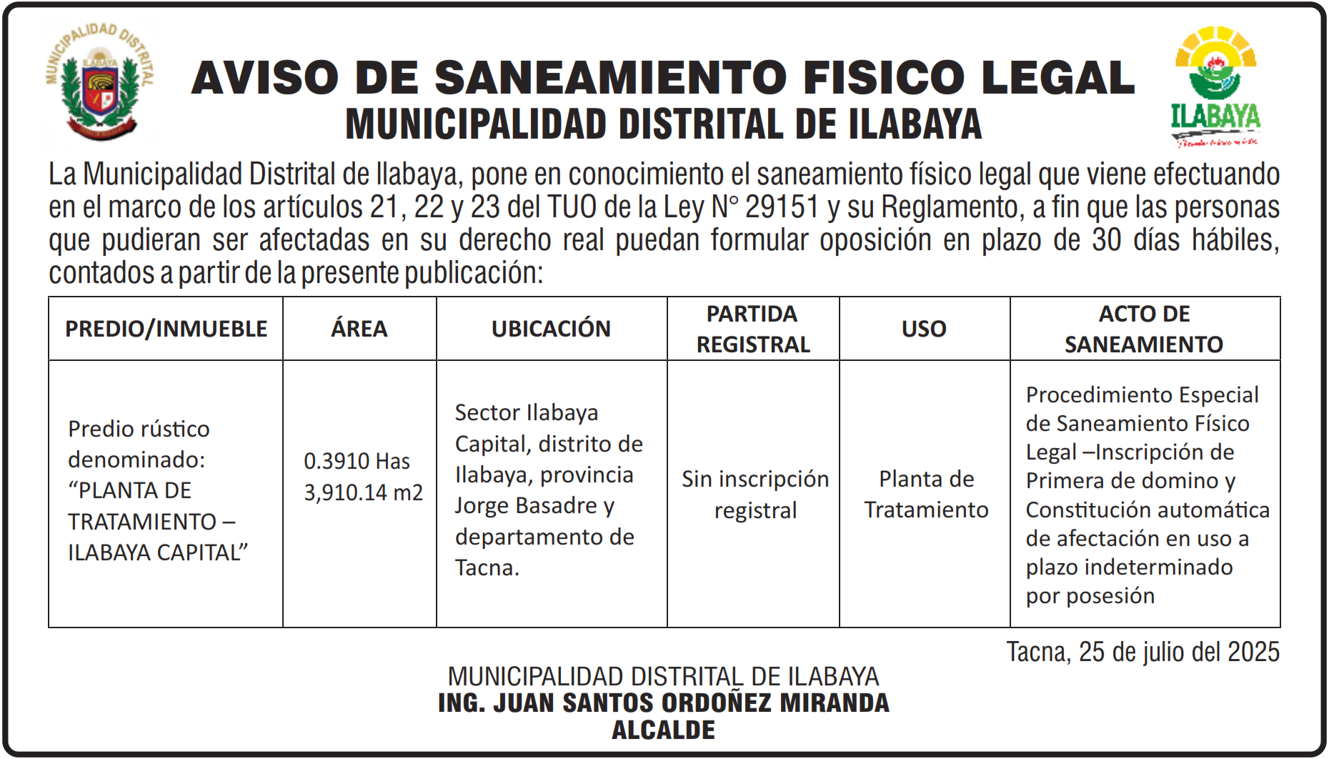 AVISO DE SANEAMIENTO FISICO LEGAL
