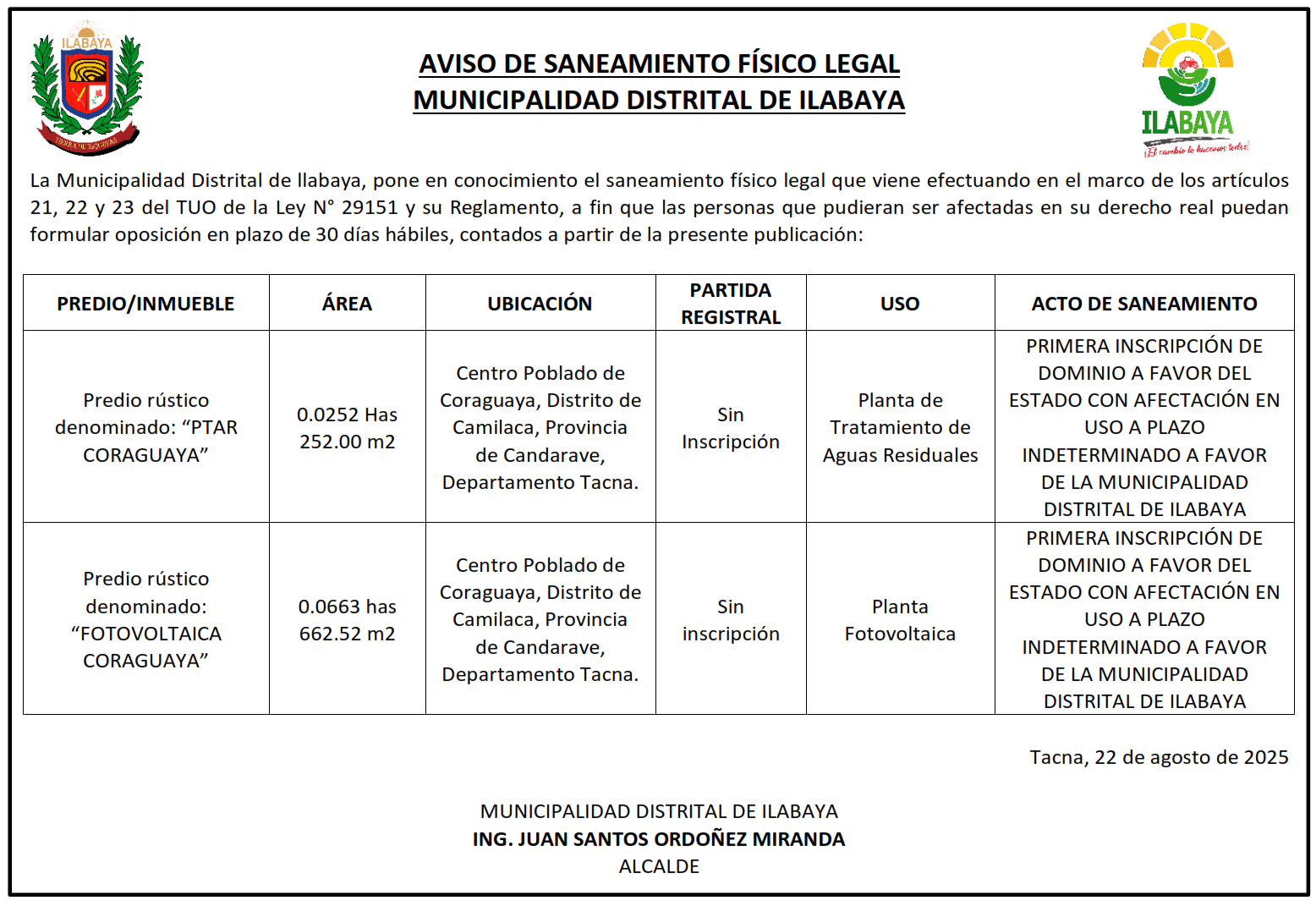 AVISO DE SANEAMIENTO FISICO LEGAL 26/08